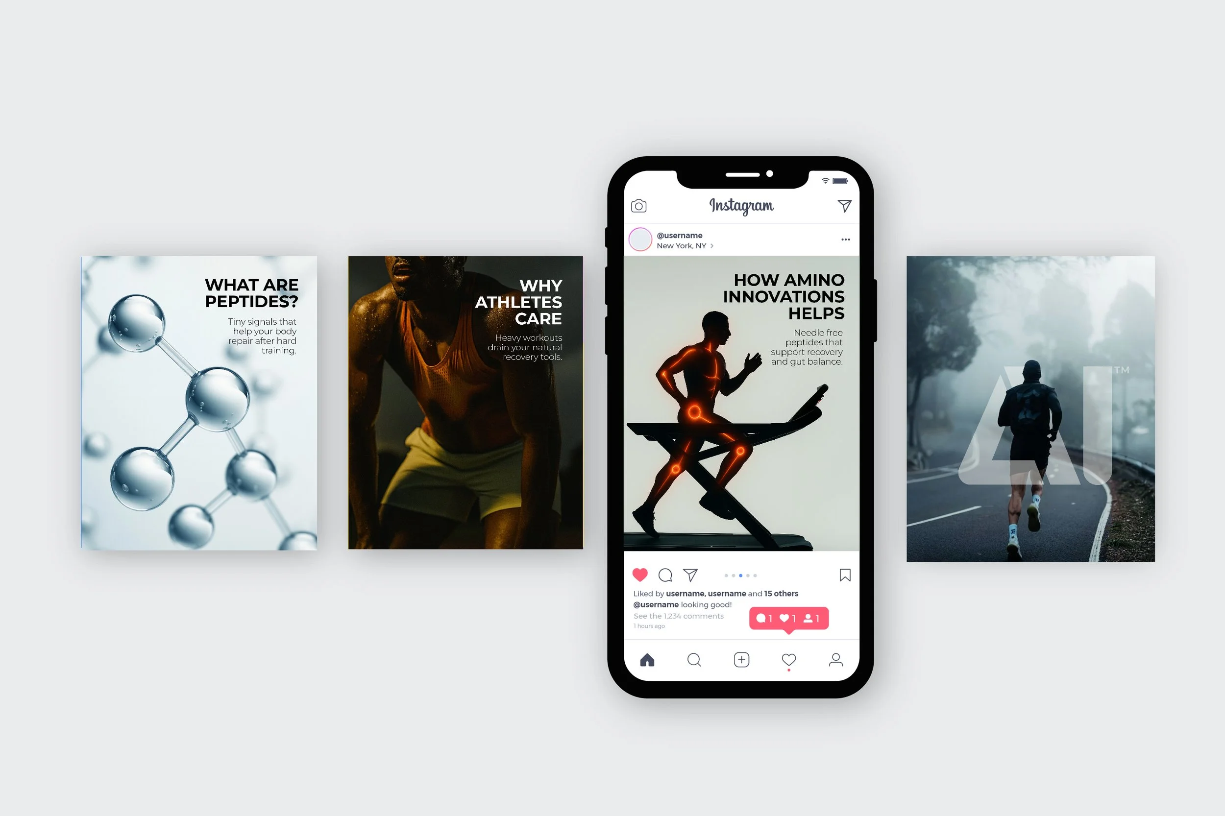 For this project, I worked on a full rebranding to elevate the social media presence and content for Amino Innovations. At Cielo Agency in Miami, I created all of the brand’s digital ads through an AI-driven workflow. Using tools like Photoshop, ChatGPT, Banana, Adobe Firefly, Canva, Figma, and Jitter , I developed the visual direction, generated campaign imagery, crafted the copy, and produced Instagram posts, reels, and stories. My focus was to translate the brand’s advanced peptide science into clear, modern, high-impact visuals that strengthened and elevated its identity across platforms.